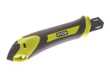 Zalamovací nůž, tělo z vysoce odolné hliníkové slitiny pro dlouhou životnost, jednoduchá výměna čepele bez použití nářadí pro větší efektivitu, pouzdro na břity zabudované v rukojeti nože.