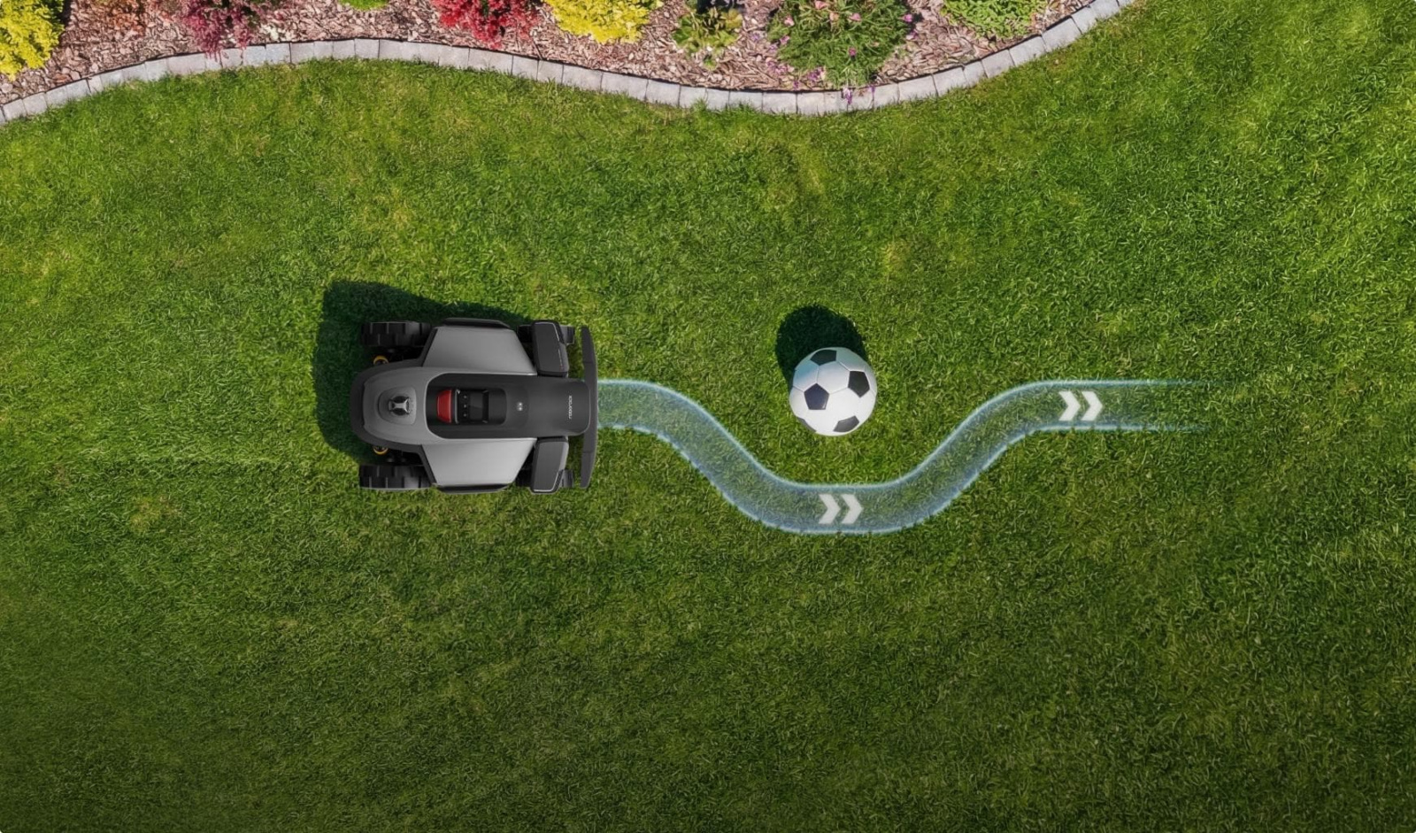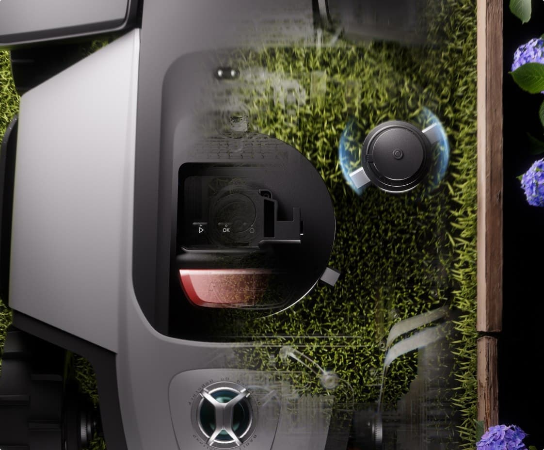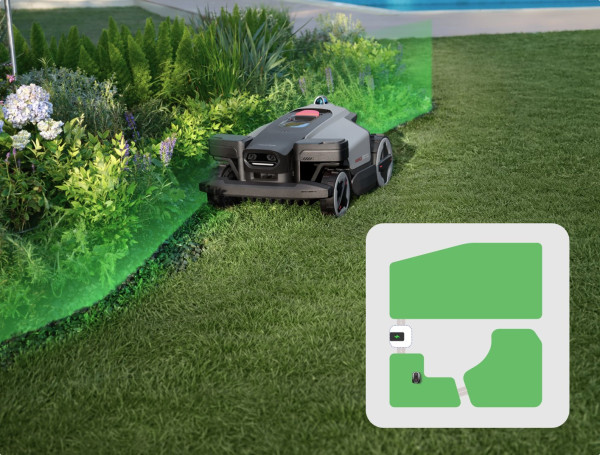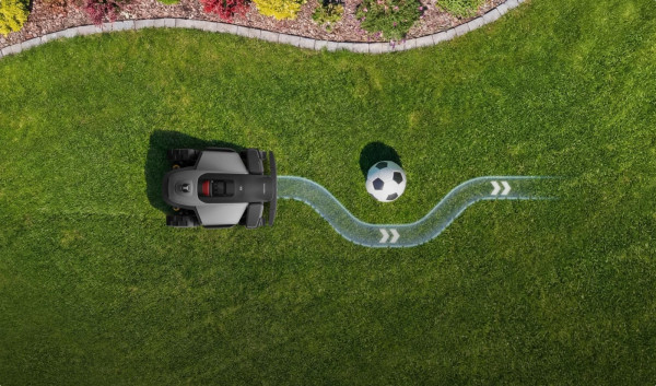 Během sečení spolehlivě rozpozná statické i pohyblivé překážky, plynule je objíždí, bezpečně mění směr a pokračuje bez zbytečných zastavení.